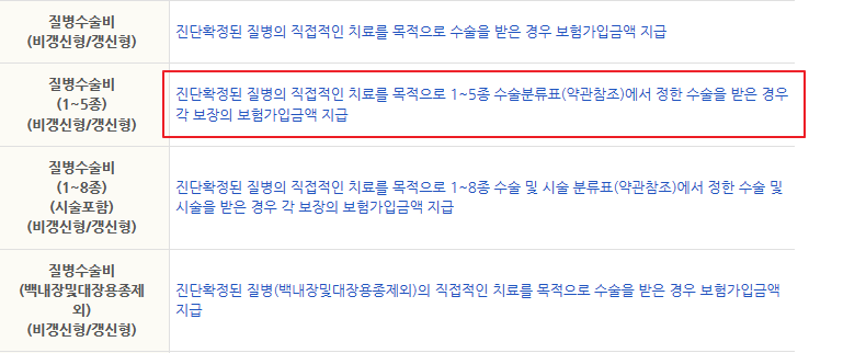 수술의 종류나 난이도에 따라 1~5종 수술분류표에 따라 보장금액이 다릅니다. 또한 64대 질병수술비는 64대 질병으로 인한 수술비를 보장합니다. 18대 특정질병수술비보장, 심장뇌혈관질환수술비보장, 39대 특정질병수술비보장, 갑상선질환수술비보장, 4대 특정질병수술비보장 등의 다양한 특약을 선택할 수 있습니다. 수술비에 관련된 보험이라서 매우 유용합니다.